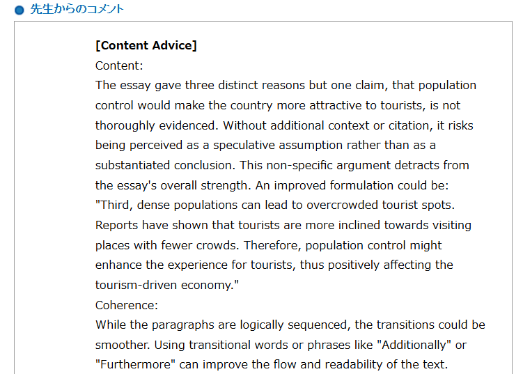以下は、英検1級の意見論述のContent Advice表示サンプルです。
